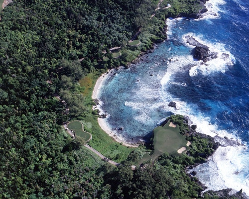 タロフォフォ:サム・スニード、ベン・ホーガンなど、伝説のPGAプレイヤー9人が各2ホールを監修したドリームコースが、さらに磨きをかけ生まれ変わりました。5番アイランドグリーンをはじめ、南国の花々とレイクの水面に映るグリーンがリゾート気分を満喫させるアウトコース。そして、雄大なタロフォフォの原生林を背景に自然の地形を活かし戦略性に富んだインコース。