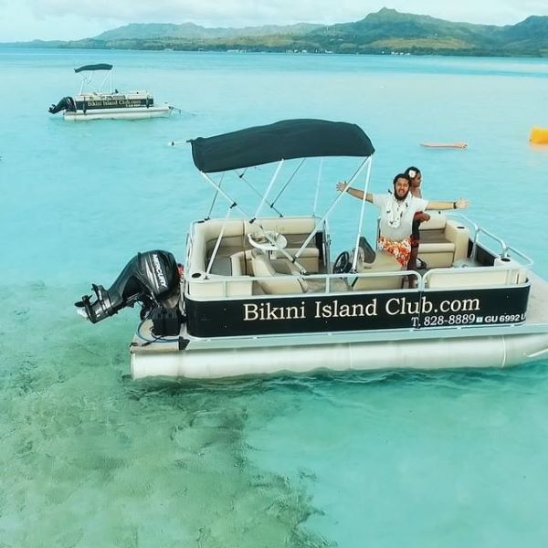 美しい自然も堪能できるのがビキニアイランドクラブの魅力です。シュノーケリングではグアム南部の海を楽しめ、スリル満点のバナナボートも体験することができます。アクアウォーカーは水深約3~4mで、初心者でも安心して楽しめるため、泳げない方でも参加できます。また、髪が濡れないため、メイクをしたままでも気軽に参加できます。ビキニアイランドはグアム南西端のメリッソ村沖合約4kmに位置する全長約1.4km、幅約250mほどの小さな島、穏やかなココスラグーンの美しいビーチと荒々しいアウトリーフの海が織り成す対照的な景観が魅力です。