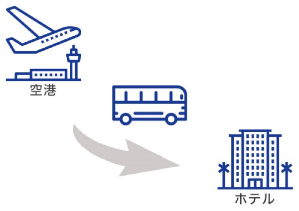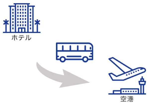 ホテル⇒空港混乗送迎時、係員がご案内いたします。空港到着後、各自お客様でチェックイン手続きをお願いいたします。