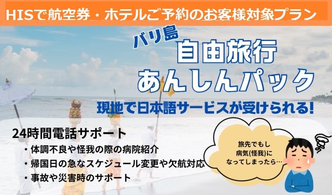 HISのバリ島行き航空券、ホテル、航空券+ホテルをご購入のお客様限定で現地日本語サポートが受けられるプランが登場!